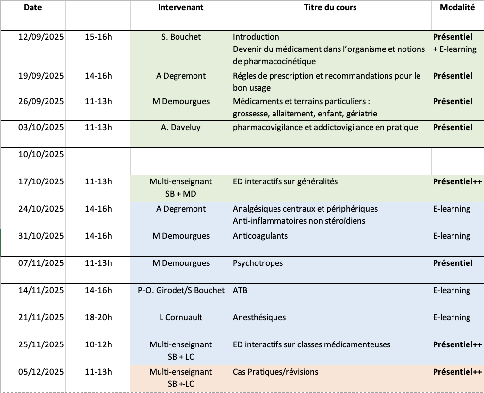Attention : les horaires des cours présentiels restent à confirmer dans l'attente de la demande de modification (la salle aussi)