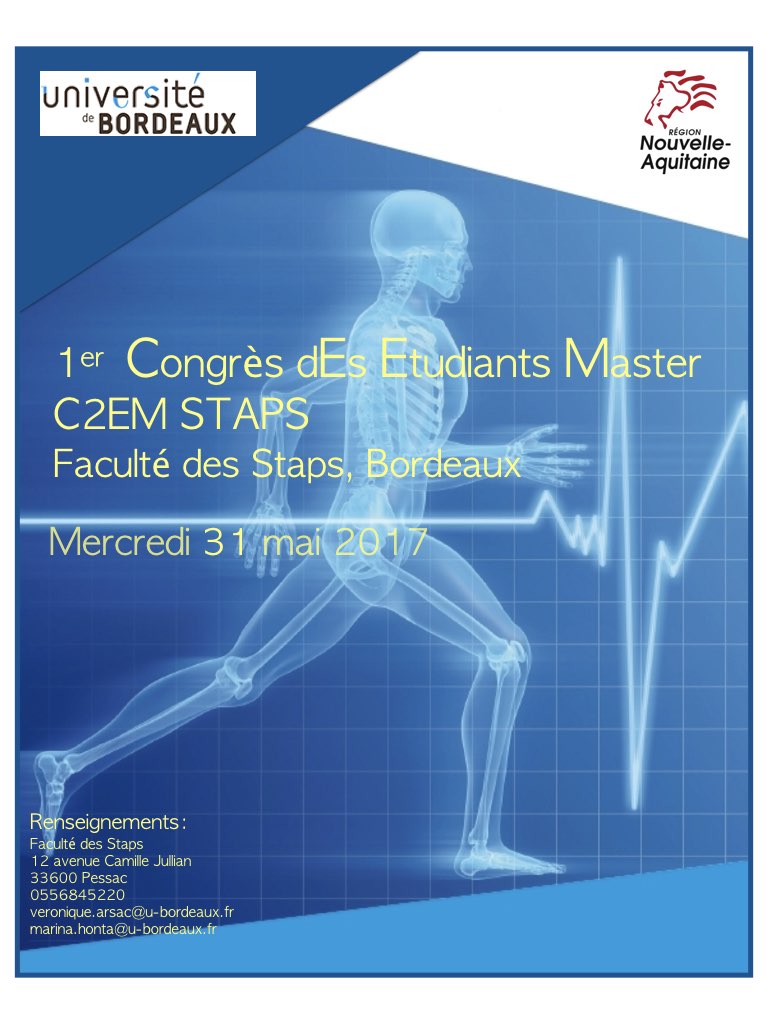 • Le Congrès des Étudiants Master STAPS de Bordeaux se tiendra le vendredi 5 avril prochain (faculté des STAPS et SMART).